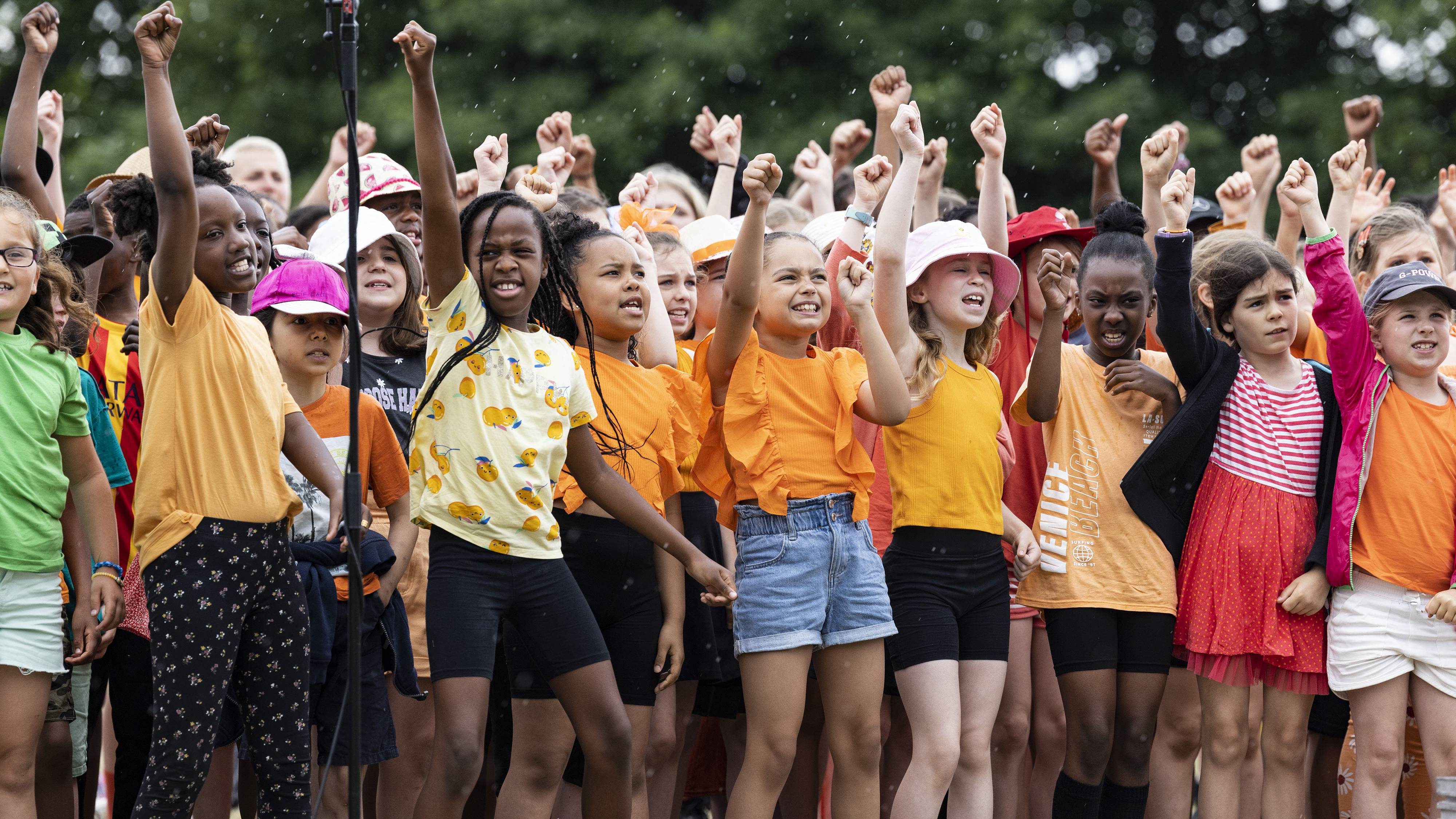 A thousand-strong choir of primary school children sung a series of newly composed songs by Mercury Prize nominated composer, singer and multi-instrumentalist ESKA, imploring their communities to take action.